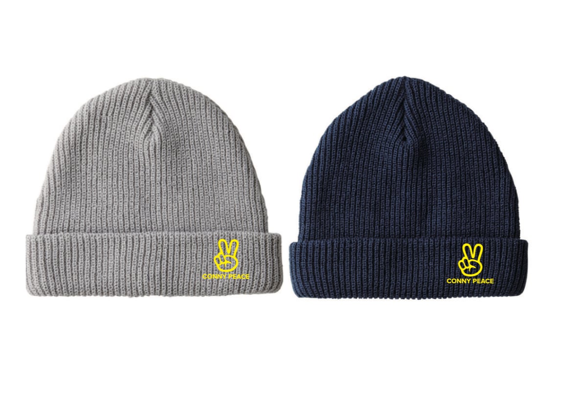 冬に大活躍、ニットキャップが登場! 遠目にも可愛いピースマーク入り✌️ グレーとネイビーの2色展開ですので、ぜひお友達と色違いでどうですか?